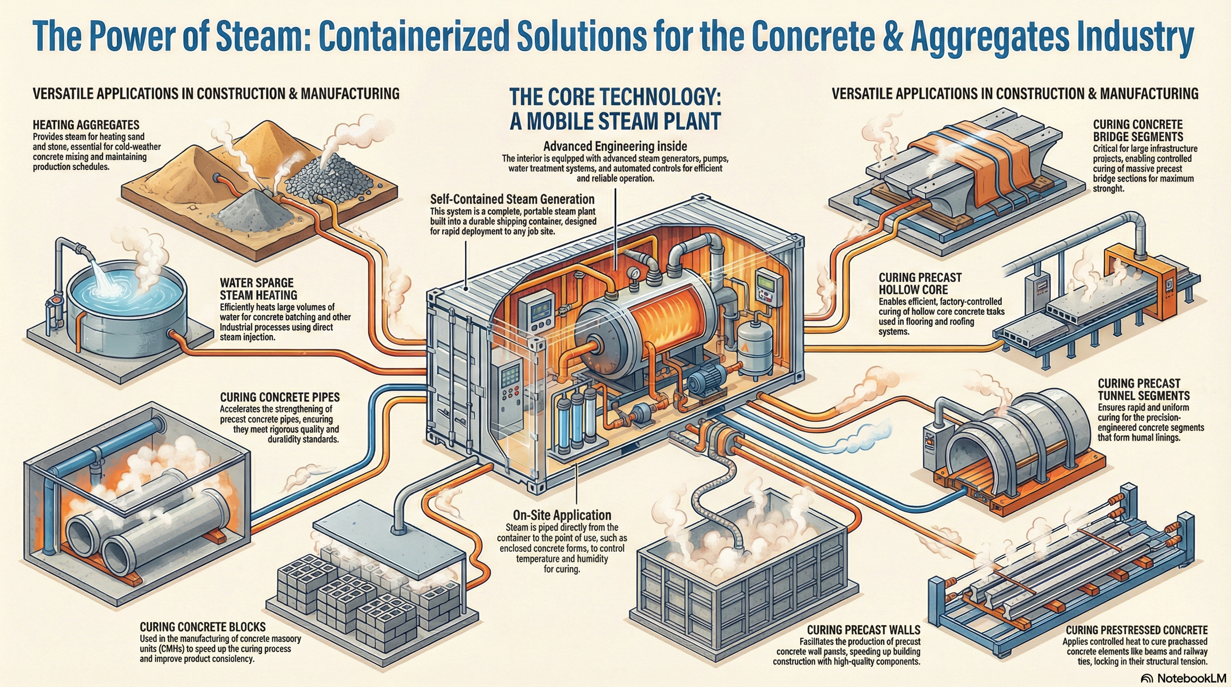 Steam Engineering has designed and manufactured innovative steam heating solutions which challenge the standards of today’s concrete plants and precast facilities. Through product development, prototyping and joint ventures, we are expanding into additional markets.